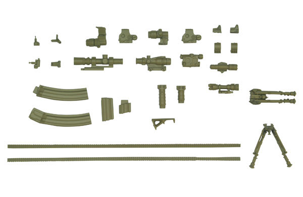 プラモデル(無彩色)【スケール】1/12【素材】樹脂(PS)※プラモデル用接着剤使用を推奨【セット内容一覧】ホログラフィックサイト×2個倍率ブースター×起倒2種ショートスコープ×2種マイクロドットサイト×2個バックアップサイト×起倒2種ウエポンライト×2種レーザーモジュール×1個45°オフセットマウント×2個フォアグリップ×3種バイポッド×開閉2種M4用20連マガジン×2種M4用100連マガジン×2種カスタマイズ用レール10cm×2個
